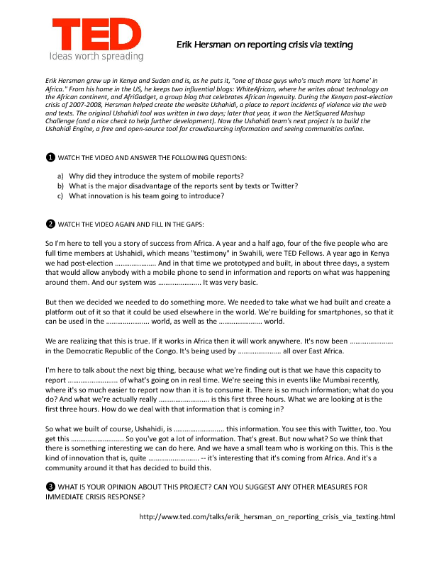 Ted Talk Worksheet Filled Out - Ted Talk Worksheet And Activity Pack 11 The Standing Rock Resistance /. In these powerful ted talks on communication, you'll learn new, more effective ways to interact with others. Listen to these five ted talks to motivate and inspire growth for the year ahead. Think back to the last time you were mesmerized by a magnificent public speaker. Just getting on stage and delivering a memorable talk can do a lot for your soft skills. With hours and hours of content available on every subject under the sun, the site has become a boundless source of motivation and inspiration.